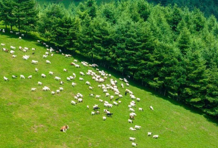 (“云上望角”草原上牛羊成群。火烧坪乡供图)
