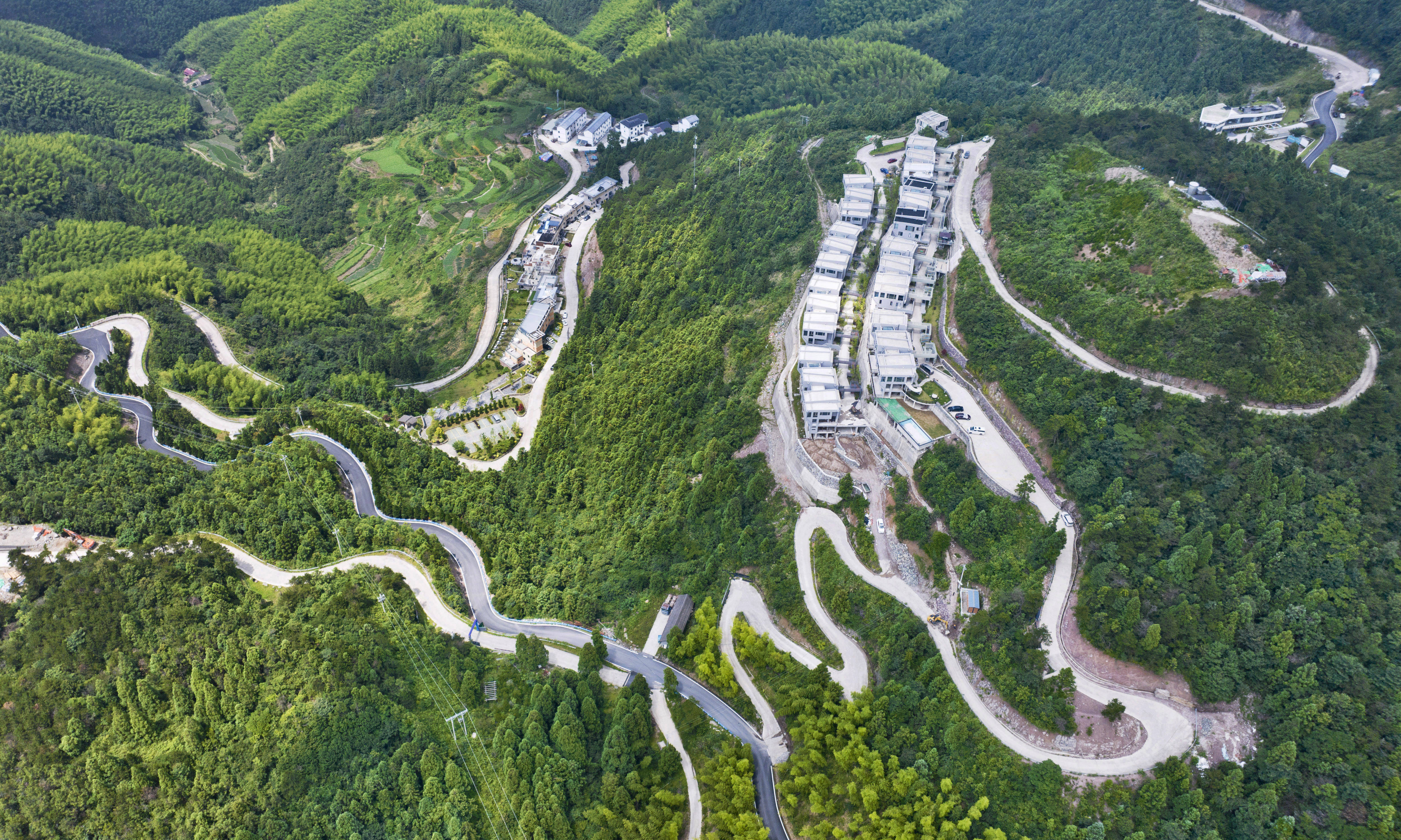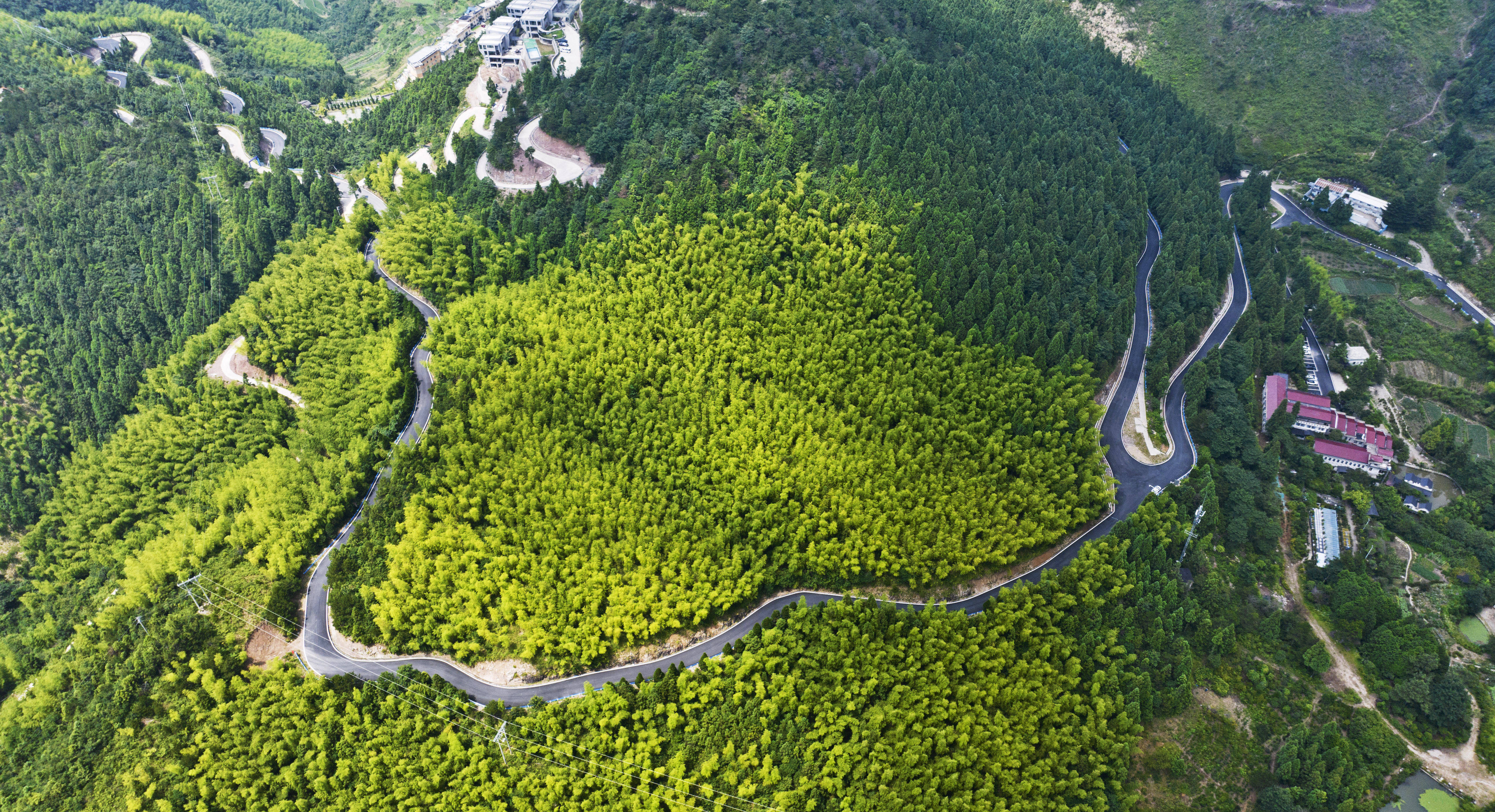 盛夏时节,浙江省金华市磐安县盘峰乡的盘山公路沿途林木葱茏,风光秀美。蜿蜒的盘山公路随山势起伏,勾勒出一幅生动的夏日画卷。